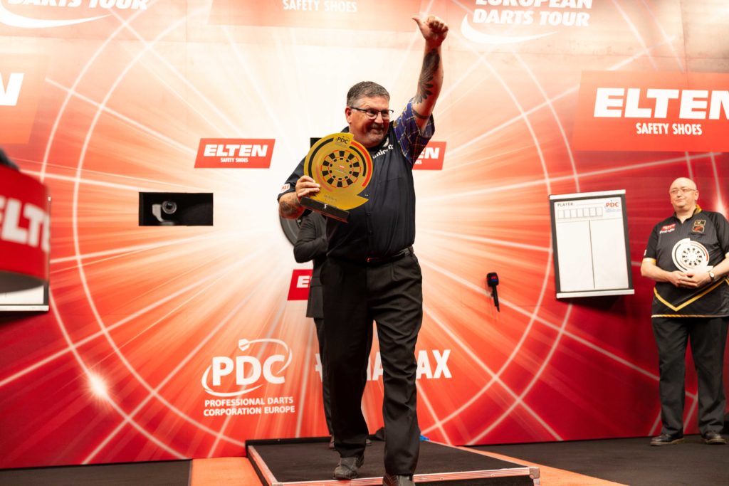 Auch Stephen Bunting hat Grund zum Jubeln! Nach über zehn Jahren auf der Tour holt sich „The Bullet“ in Riesa seinen ersten European Tour-Titel.