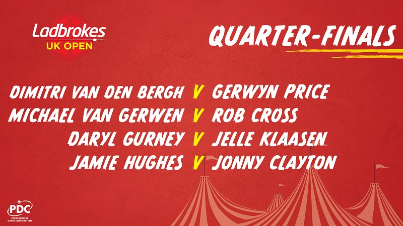 Für den Weltmeister Peter Wright ist die UK Open hingegen beendet, der unterlag am Abend Daryl Gurney mit 6:10. Das gleiche Schicksal ereilte Gary Anderson, der sein Achtelfinale mit 9:10 gegen Jelle Klaasen verlor.